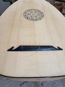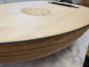 Eine Laute entsteht, nach einer Vorlage von Vendelio Venere (1592 Infos zum Instrument unter https://www.vanedwards.co.uk/history2.htm):